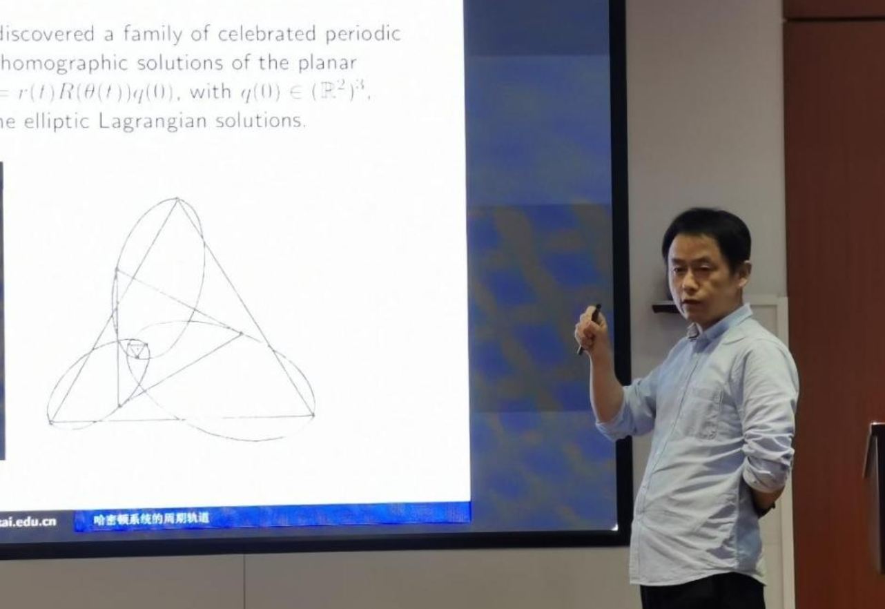 段华贵教授报告题目为“哈密顿系统的周期轨道”。段教授首先介绍了哈密顿系统的研究背景,然后介绍了为研究周期轨道而建立的辛道路的指标迭代理论;最后进一步地介绍了有关周期轨道多重性猜想的最新研究进展。